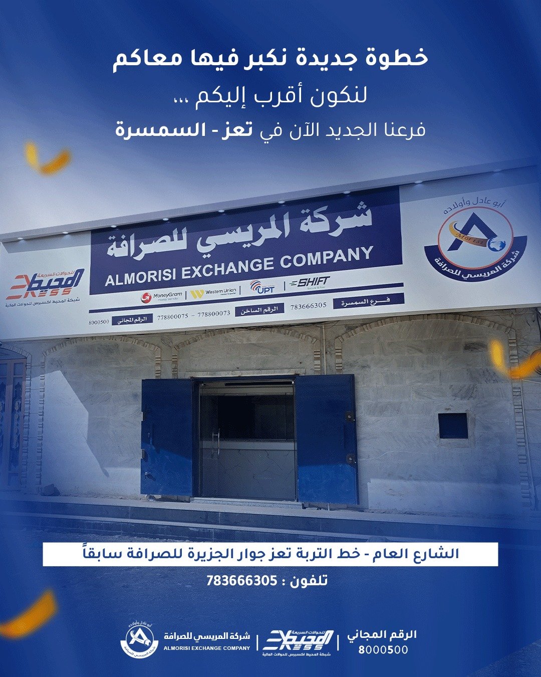 تعد “شركة المريسي للصرافة” إحدى الشركات الرائدة في مجال الصرافة والتحويلات المالية والتي تأسست على يد رجل الاعمال الحاج / علي عبدالله صالح المريسي, امتدادا للعمل التجاري من ثمانينات القرن الماضي , حيث بدأت قصة النجاح في المجال المصرفي في بداية التسعينات من القرن الماضي بأول فرع في محافظة الضالع . استمر النجاح والتوسع واكتسبنا ث ...
